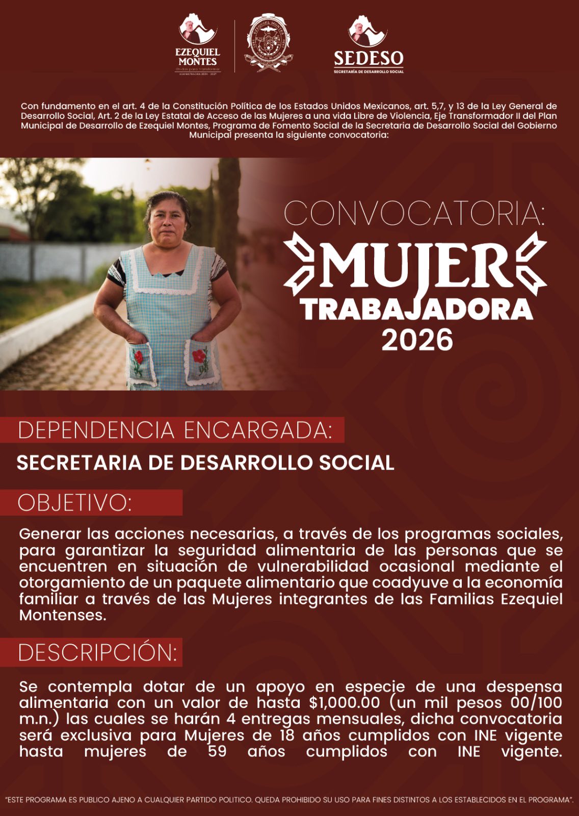 • Secretaría de Desarrollo Social del Municipio de Ezequiel Montes – Convocatoria oficial del programa Mujer Trabajadora 2026.